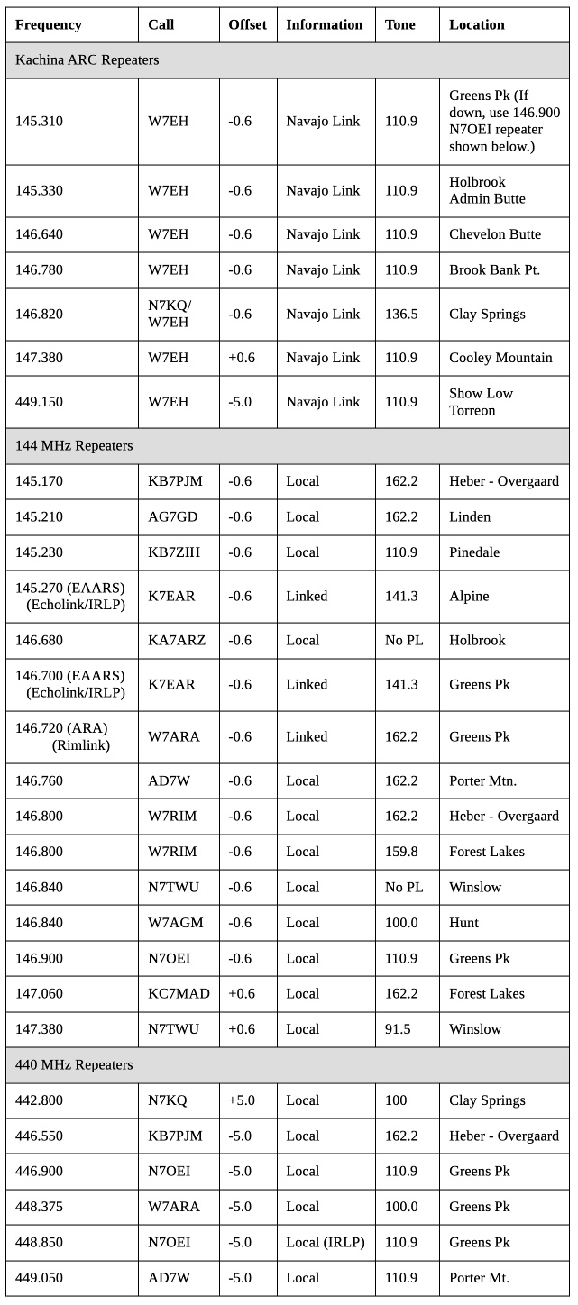 | 18 / 462.625 | Linden | AG7GD – Kachina ARC |